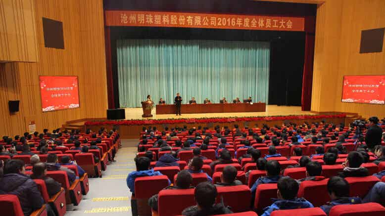 1月24日上午9時,滄州國際會議中心會場內鮮花綻放,座無虛席,到處洋溢融融春意。滄州明珠1000余名干部職工歡聚一堂,在這里隆重召開2016年度全體員工大會。大會開始前集團公司董事長于桂亭攜集團公司及明珠公司高管給在座的全體員工及家屬拜年,值此新春佳節來臨之際向大家致以新春的問候!