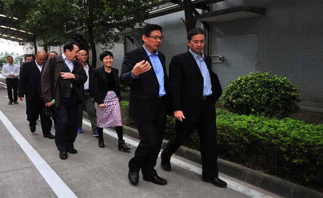 圖二:吳曉暉總經(jīng)理攜其余廣新控股領(lǐng)導(dǎo)進(jìn)入生產(chǎn)車間進(jìn)行參觀考察