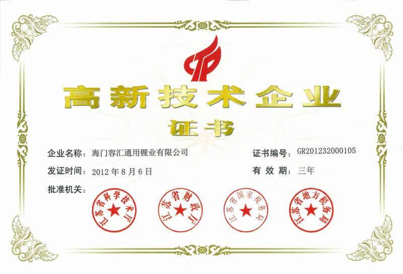 2012年8月6日,江蘇省科學(xué)技術(shù)廳為我公司頒發(fā)了高新技術(shù)企業(yè)證書(shū),公司通過(guò)了高新技術(shù)企業(yè)認(rèn)定,可喜可賀。