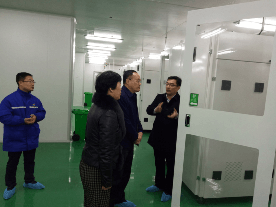 在玉皇新能源董事長王瑛的陪同下,練主任一行參觀了玉皇新能源產業園。練主任認真聽取了王董講解的有關電池生產設備的調試及運行情況,對設備的先進性表示認同,并鼓勵企業敢于創新、勇于創新、善于創新。