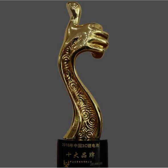 附圖1:榮獲“2016年中國3C鋰電池十大品牌”獎杯