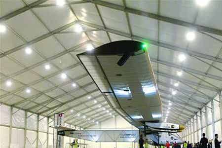 楊斌介紹,“陽光動力2號”體型龐大,翼展達到72米,比波音747客機還要寬。不過,其重量只有2.3噸,相當于一輛小汽車的重量。