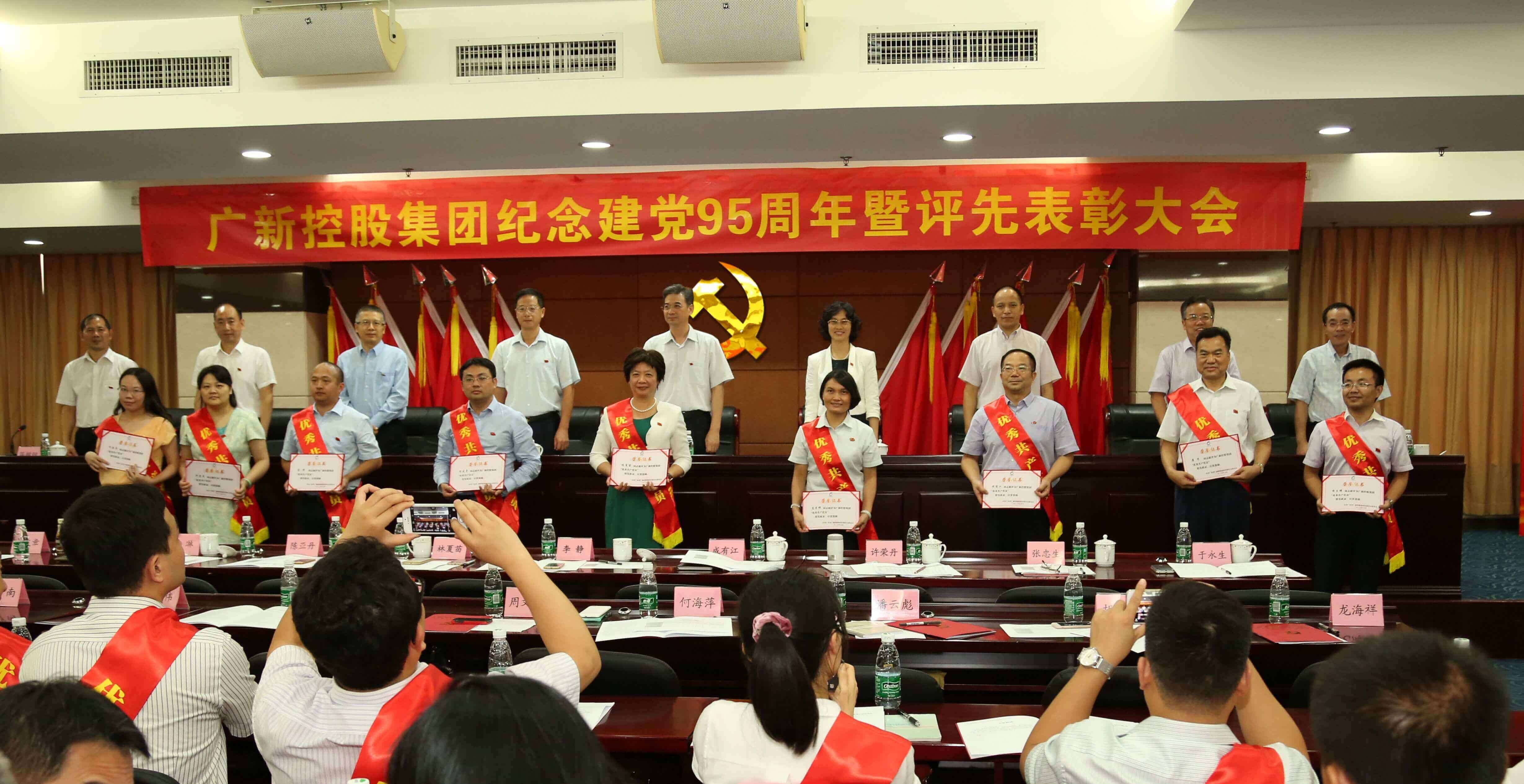 當天下午,廣新控股集團在廣東外貿廣場召開紀念建黨95周年暨創先爭優表彰大會。佛塑科技領導班子全體成員及受表彰的先進基層黨組織代表和優秀共產黨員、優秀黨務工作者17人參加了大會。大會由廣新控股集團黨委副書記、總經理吳曉暉同志主持,集團黨委書記、董事長黃平同志作了“兩學一做”專題黨課發言。會上,廣新控股集團對先進基層黨組織、優秀共產黨員和優秀黨務工作者進行了表彰,佛塑科技黨委被評為“先進黨委”,經緯分公司黨總支部、緯達公司黨支部分別榮獲“先進黨總支”、“先進黨支部”稱號;崔華、劉燕婷、潘波、伍星有、蘇耀明、唐潔云、曾東輝、陳煥忠等8名同志榮獲“優秀共產黨員”稱號;經緯分公司黨總支部書記、副總經理徐浩忠同志、華韓公司黨支部書記、總經理李偉佳同志榮獲“優秀黨務工作者”稱號。