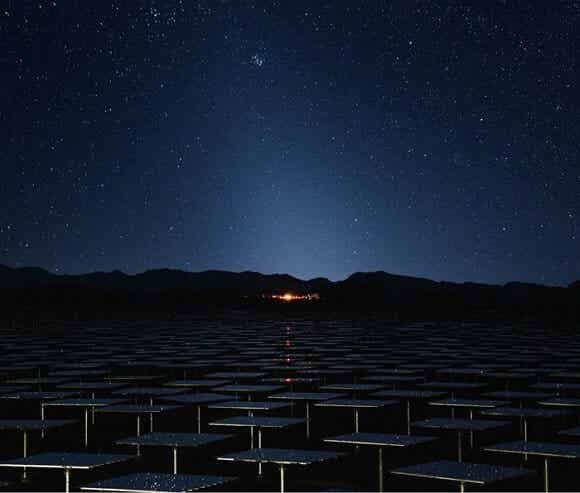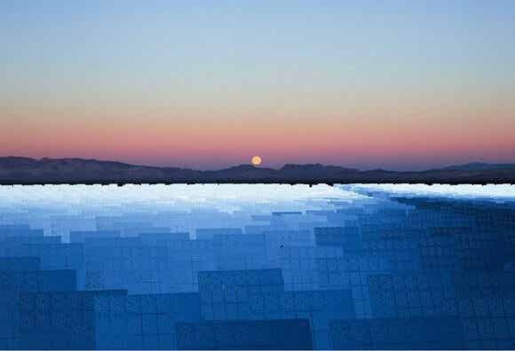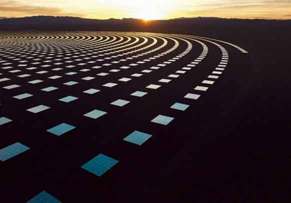 鋰電世界 從飛經(jīng)內(nèi)華達(dá)上空的飛機(jī)往下看,新月沙丘(Crescent Dunes)光熱電站就像是在地表上的一道明亮閃光。你只有在地表上看才會(huì)了解到它是多么的龐大:近675.8公頃的沙漠被10347個(gè)公告牌大小的定日鏡所覆蓋,這個(gè)發(fā)電站所提供的電量足以支撐75000所家庭。
