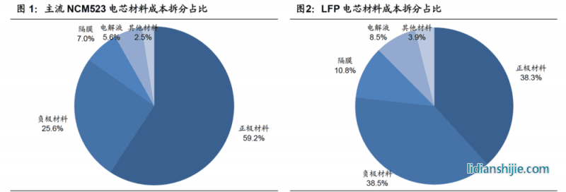根據已有電池的測算,正極材料的占比超過60%