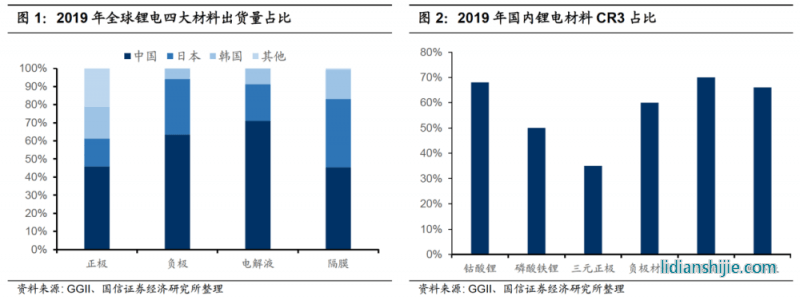 國內正極材料產能全球占比約為 60%,但是出貨量占比仍較低在 45%左右,低于負極、電解液和隔膜等海外放量