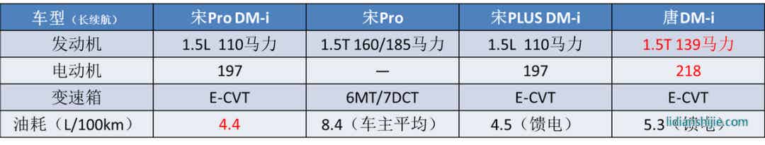 它和普通宋Pro最大的不同,就是用上了大哥宋PLUS DM-i上面那套1.5L+電機組成的插混系統。在這套系統的加持之下,宋Pro的饋電油耗可以下降到4.4L/100km,在比亞迪的一眾SUV中,它的省油能力可以算得上是最好的。