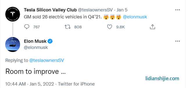 其實馬斯克很少跟通用汽車起正面沖突,他更喜歡調(diào)侃福特,但這一次竟然讓他在推特上評論的原因很簡單,那就是2021年第四季度,通用汽車在美國僅交付了26輛電動車。包括25輛的雪佛蘭Bolt以及一輛電動悍馬。