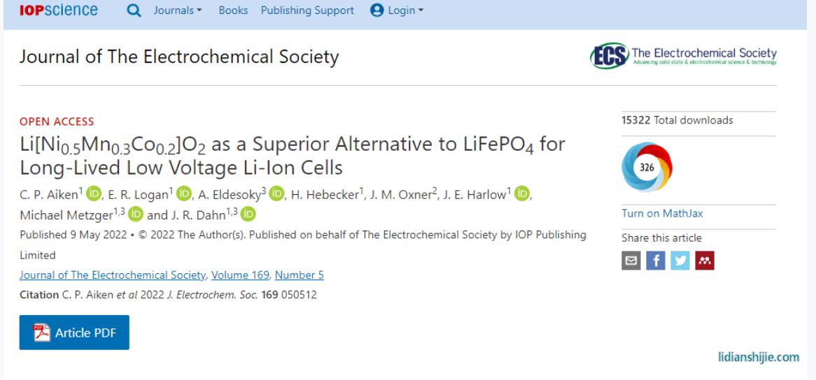 該電池的設(shè)計(jì)主要是以鎳鈷錳酸鋰作為正極的電池(NMC 532)可以在3.8V的較低電壓下工作,同時(shí)兼容雙氟磺酰亞胺鋰(LiFSI)鹽電解質(zhì)的NMC 532電池能避免高壓腐蝕問(wèn)題。論文還用一組數(shù)據(jù)表明了該電池的壽命長(zhǎng)短,具體是如果溫度控制在25攝氏度,NMC 532電池在近2,000次充電-放電循環(huán)后沒(méi)有出現(xiàn)顯著的損失,那么NMC 532電池就有可能有超過(guò)100年的使用壽命。
