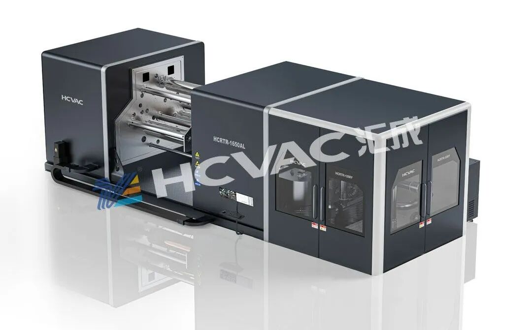 HCVAC通過自主研發PVD RTR蒸發鍍鋁膜技術,超薄復合鋁箔 PVD 蒸發卷繞鍍膜設備,實現在厚度4.5~6.0μm、幅寬600~1700mm PET/PP塑料薄膜表面一次完成雙面蒸鍍鋁膜,設備工藝走速10-100m/min,攻克大規模快速蒸發沉積厚鋁膜難關。