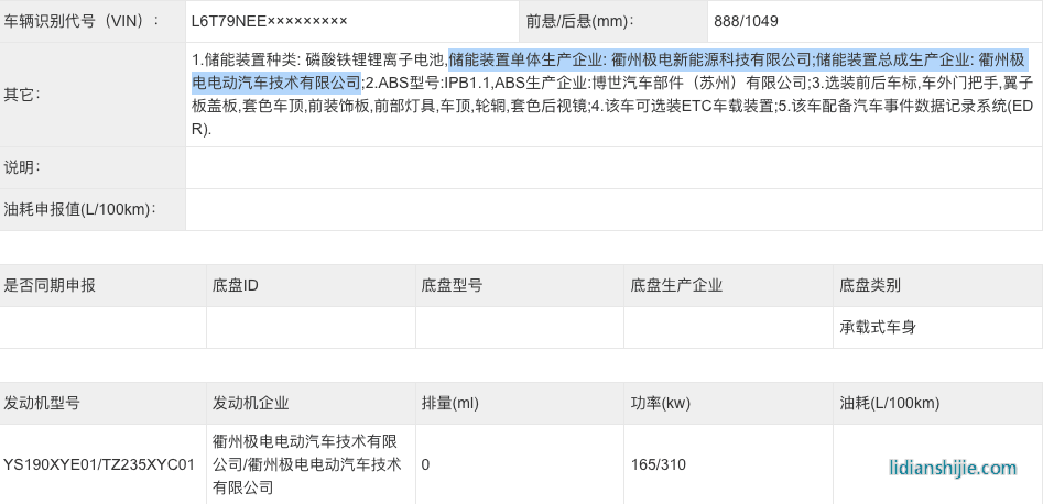 極氪007申報工信部公告信息