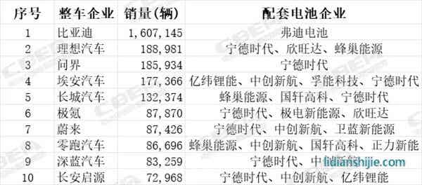 2024年上半年新能源汽車銷量TOP10車企電池配套信息