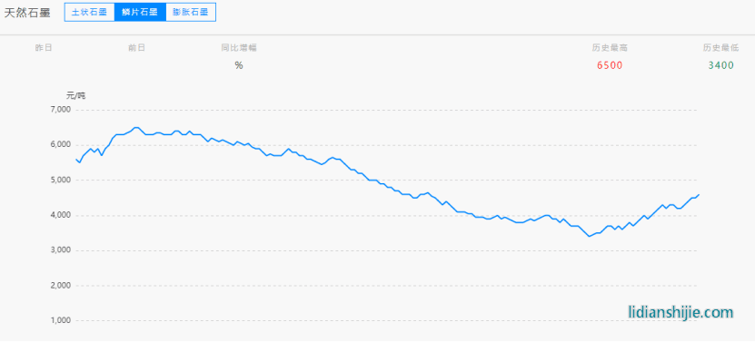 首先從天然石墨的價格來看,在今年初碰到了一個高點之后,下跌的幅度比較大,鱗片石墨直接從6500元/噸跌至九月初的3400元/噸。但這個產品最近兩個月時間開始有所反彈,價格已經回到了4600元/噸。