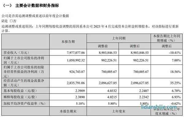 4月15日晚,寧德時代發(fā)布2024年第一季度報告。當(dāng)期,寧德時代營業(yè)收入798億元,同比下降10.41%;歸母凈利潤105億元,同比增長7.00%;毛利率達26.42%,同比提高5.15個百分點。
