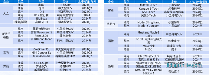 滲透率來說,新能源汽車滲透率抬升,混動比例有所提升。2023年美國市場新能源汽車新能源滲透率達到9.1%,抬升2.2pct;其中,BEV占比80.9%。2024年1-3月新能源滲透率達到9.4%,相較于2023年全年抬升0.3pct;其中,BEV占比77.7%。