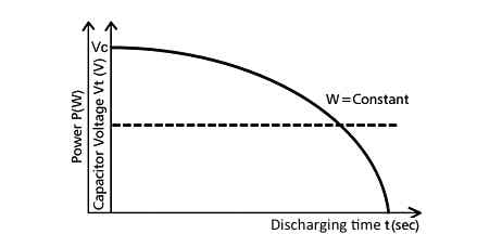 電容的儲電量確實和電壓平方成正比,。所以均衡功率輸出的時候,放電曲線會是這樣子。前一階段電壓下降比較慢,后面逐漸加速越來越快,直到降低到某個不可用的電壓之下。這個曲線確實沒有電池放電曲線平緩