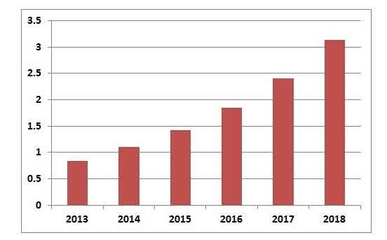 特別要指出的是,電池技術進步的速度遠遠比超級電容要慢,一個3000F的超級電容,從2000年的5000美元已經降低到現在的50美元,降低了100倍;而同樣時間內的相同容量的電池價格只降低5~6倍。所以隨著技術的進步,超級電容將會有越來越多的應用。下圖是IDTech給出的市場預測,單位是十億美元。