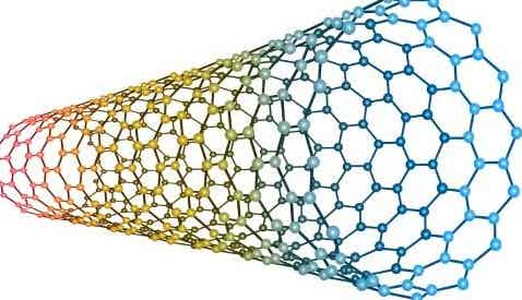 1991年,NEC公司的SumioIijima發明了CNTs,具有高強度和彈性的碳原子圓柱,就像卷起的鐵絲網。它們是富勒烯家族的成員,具有驚人的性能,例如與銅一樣的導電能力、硬度比鋼還高,接近于鉆石。CNT的直徑只有人類頭發的5萬分之一,密度是鋁的一半,其導熱及導電能力比已知的其他材料都要好。