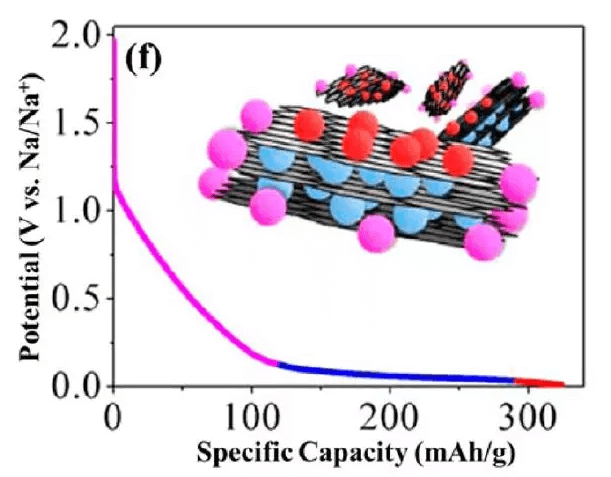 硬碳也是一種可以儲存Na離子的負極材料,由于硬碳材料結晶度較低,碳原子層的排布規則度較低,因此可以儲存較多的Na離子,其容量可達到300mAh/g以上,但是循環性能較差,例如1維的納米碳纖維循環600次以后容量僅為176mAh/g。