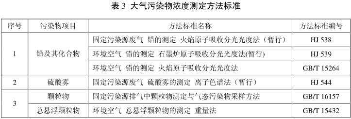 5.1.4對企業(yè)排放大氣污染物濃度的測定按照表3規(guī)定的方法執(zhí)行。