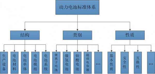 一般動力電池標準體系可以從動力電池的結構、類別和相關性質來分。動力電池標準體系框架如圖所示。