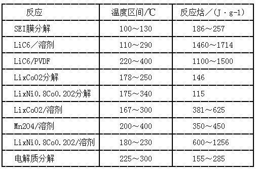 盡管SEI分解反應(yīng)熱相對較?。ㄒ姳?),但其反應(yīng)起始溫度較低,會在一定程度上增加負(fù)極片的“燃燒”擴(kuò)散速度。