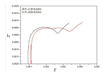 此外通過EIS 測試也可以看出極卷干燥的三元電池相比與正常干燥工藝電池的極化程度大,主要原因可能是水分含量過高,形成的SEI 膜并不穩定導致極化內阻升高如圖: