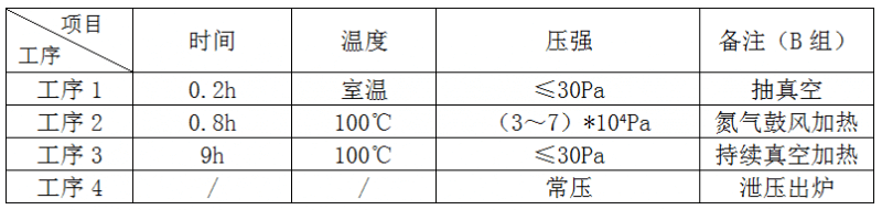 選用本公司生產的三元體系B 型電池30 支進行接觸式干燥,干燥溫度100℃,時間為5~10h。干燥工藝如下: